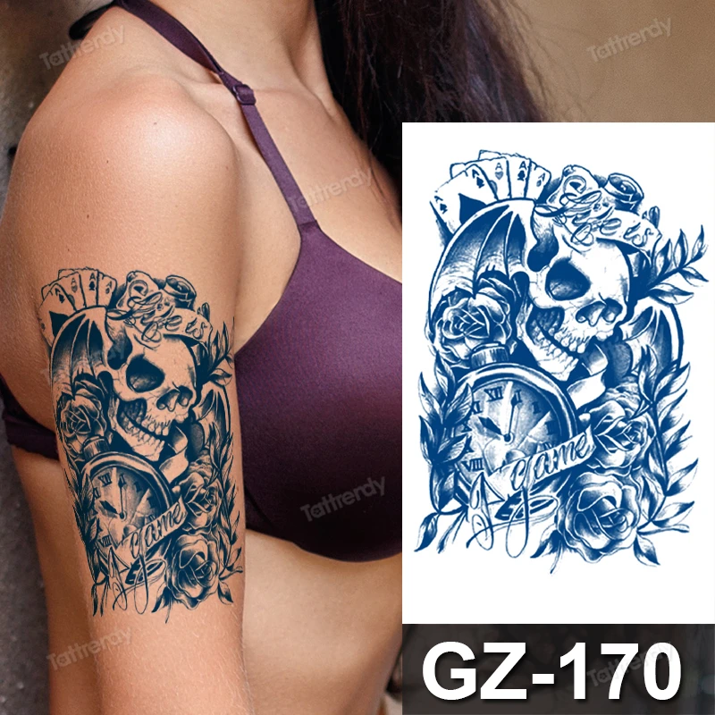 Sicherheit Wasserdicht Anhaltende Saft Temporare Tattoo Aufkleber Frauen Manner Arm Sleeve Tattoo Buchstaben Uhr Kompass Schadel Augen Rose Design Aliexpress